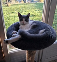 Vichy s'appelle maintenant Maou. C'est le petit garçon qui a choisi son nouveau nom. Maou a très rapidement pris ses repères. Très câlin, il passe beaucoup de temps avec les enfants pour leur plus grand plaisir. Ils l'embêtent un peu, mais Maou, de bonne composition, se laisse faire. Par intermittences, il a un voile sur les yeux. Il a eu un contrôle chez le vétérinaire. Il voit bien et aucune intervention chirurgicale ne doit être envisagée pour le moment. Ce n'est pas gênant et si cela devait le devenir dans le futur, ses maîtres aviseraient avec le vétérinaire la meilleure des solutions pour lui. L'après-midi, il dort beaucoup et le soir venu, il est en pleine forme et n'a pas envie de dormir tant qu'il y a de la lumière. Il dort dans le lit, près de sa maîtresse et se met en écharpe autour de son cou. Il ne manque de rien. Il a un arbre à chat, fabriqué maison, pour observer par la fenêtre. Il a de bonnes croquettes de qualité. Très propre, il ne fait pas de bêtises. C'est un chaton modèle, très affectueux. Un amour, dit son adoptante !