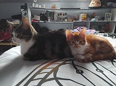 Pandora vit avec Tyssie adoptée chaton au refuge en 2022, dont la maman est NEIGE